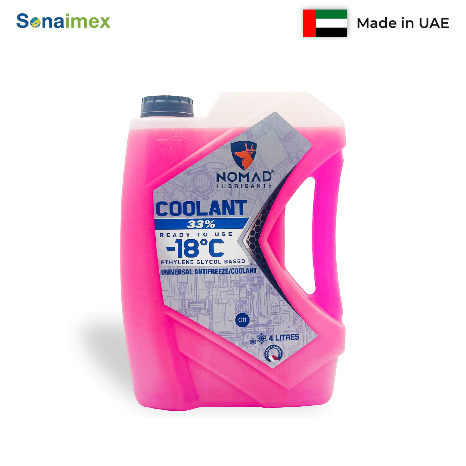 NƯỚC LÀM MÁT ĐỘNG CƠ Ô TÔ NOMAD COOLANT 33% MÀU HỒNG, CAN 4 LÍT, NHẬP KHẨU DUBAI